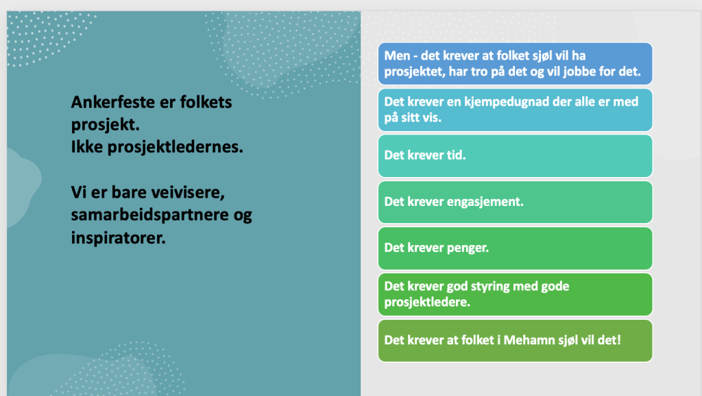 Det som er viktig for oss er at Ankerfeste-prosjektet er noe folk støtter, er med på å få til og ikke minst viser hva de mener er viktig. Vi som prosjektledere er bare veivisere og forhåpentligvis også inspiratorer.