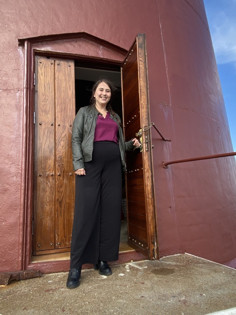Kine Terese Sandtrøen kom fra Henningsvær til en bursdag i Mehamn og ble utfordret av tanta si, Lisbeth Sandtrøen, til å ha en utstilling på Slettnes fyr under Kulturdugnad Gamvik.